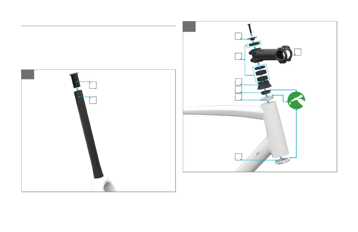 ˚ Instala la parte delantera (horquilla, juego de dirección, espaciadores del juego de