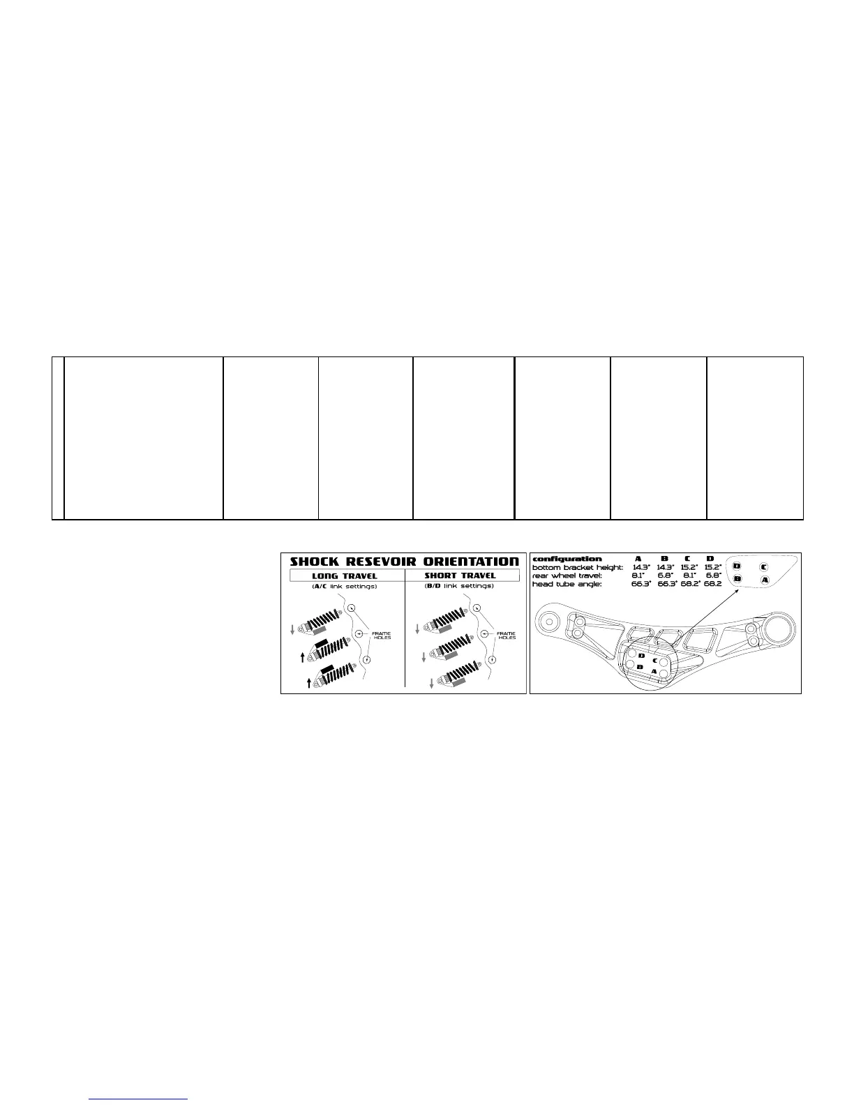 long travel setting (lower shock eye bolt) and the middle progression setting (upper shock eye bolt). Positioning the shock