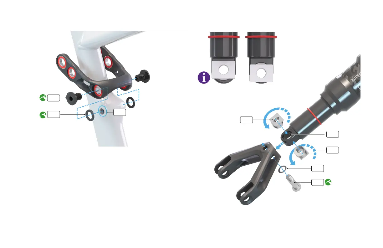 Grease and thread the link at seat tube bolts (C) into the frame.