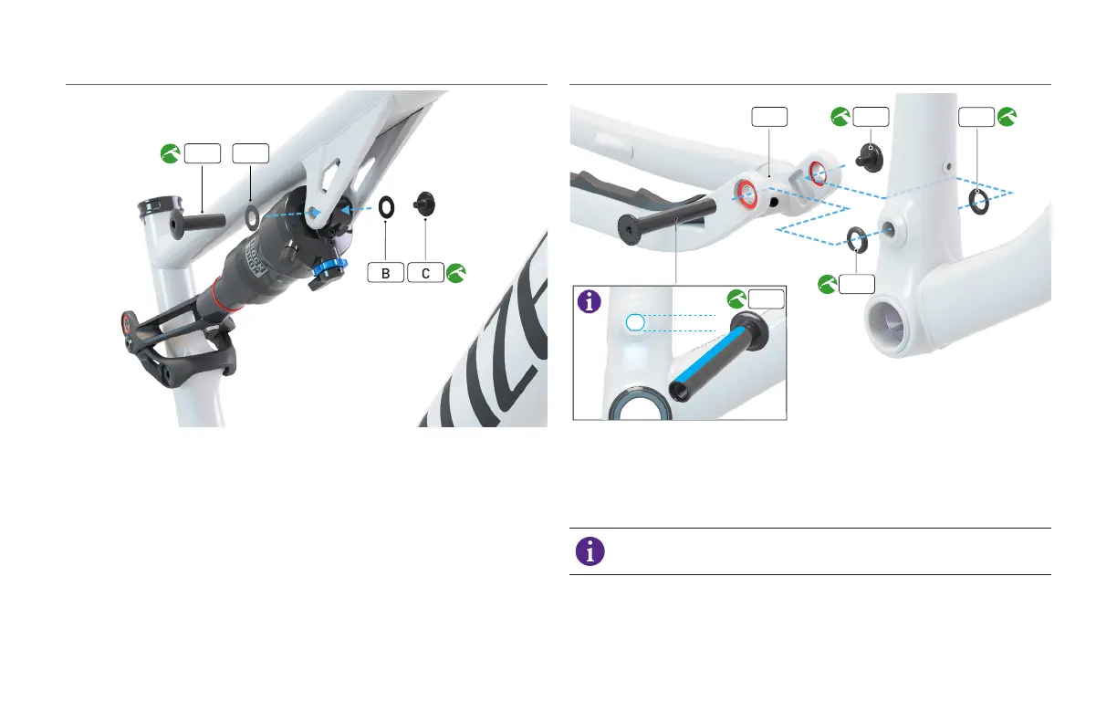 Grease, then insert the main pivot axle (C) through the chainstay (drive