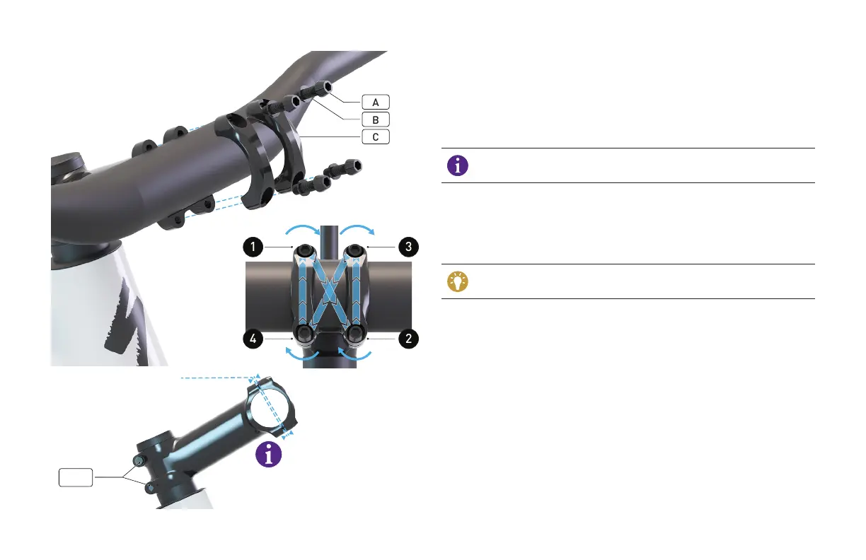 hex bit, torque the stem bolts (D) to 6 Nm / 53 in-lbf.
