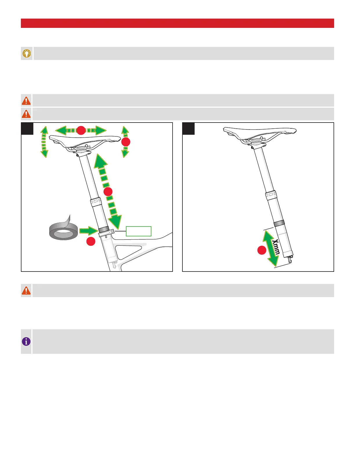 WARNING! For general instructions regarding the installation of the seatpost, refer to the appropriate section in the Owner’s Manual. Riding with an improperly tightened