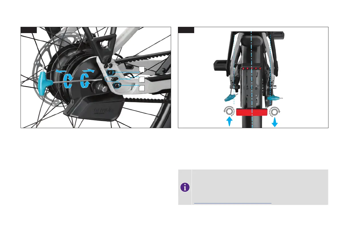 Réglez la vis de réglage située du côté opposé à la transmission jusqu’à ce que la roue soit