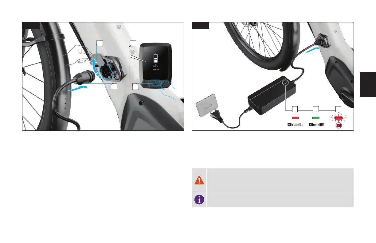 Während des Ladevorgangs leuchtet die Diode am Ladegerät dauerhaft rot (1). Wenn der