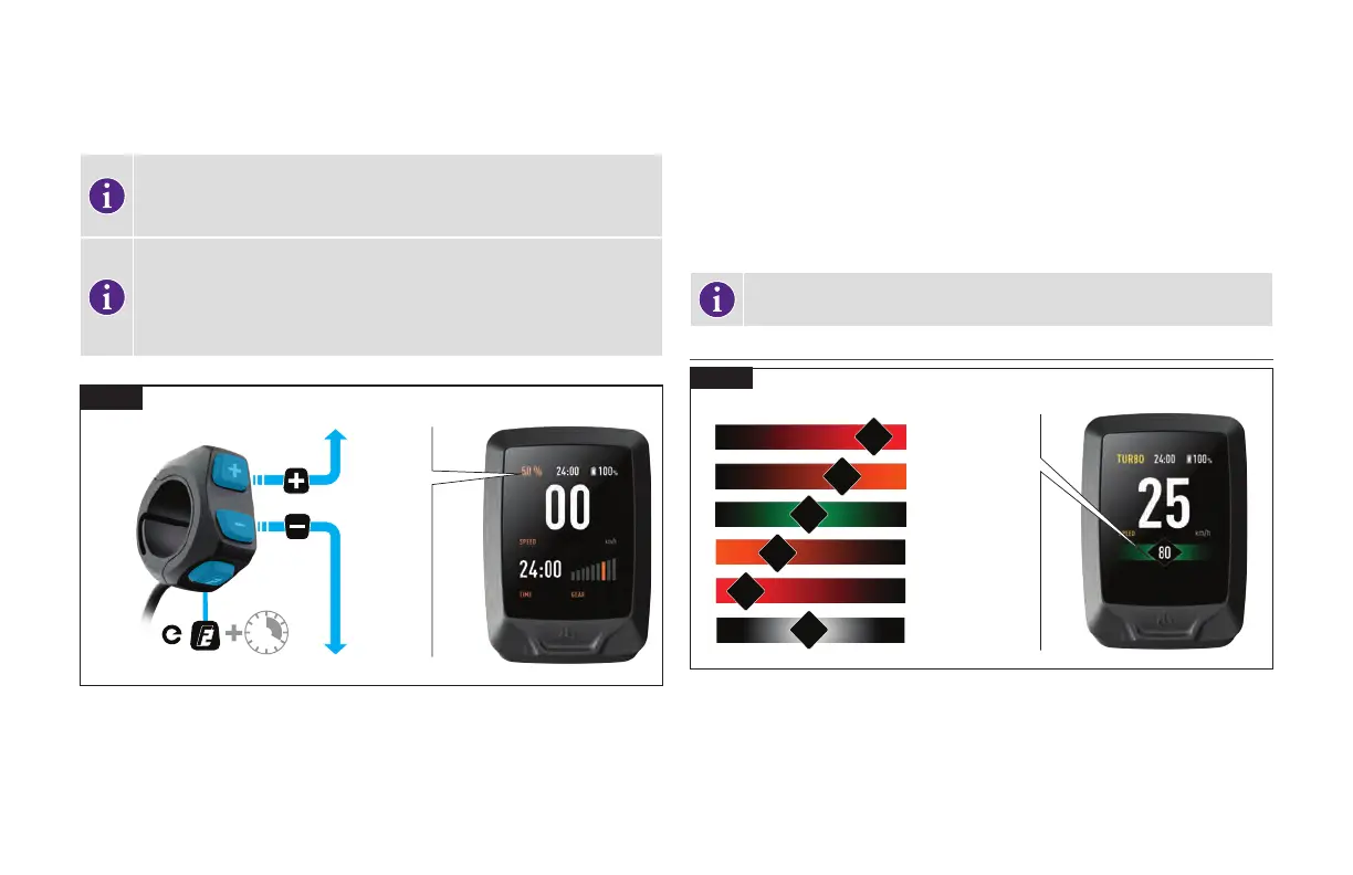 na niższy (z TURBO na SPORT, ECO, OFF), naciskaj przycisk (-). Aby zmienić