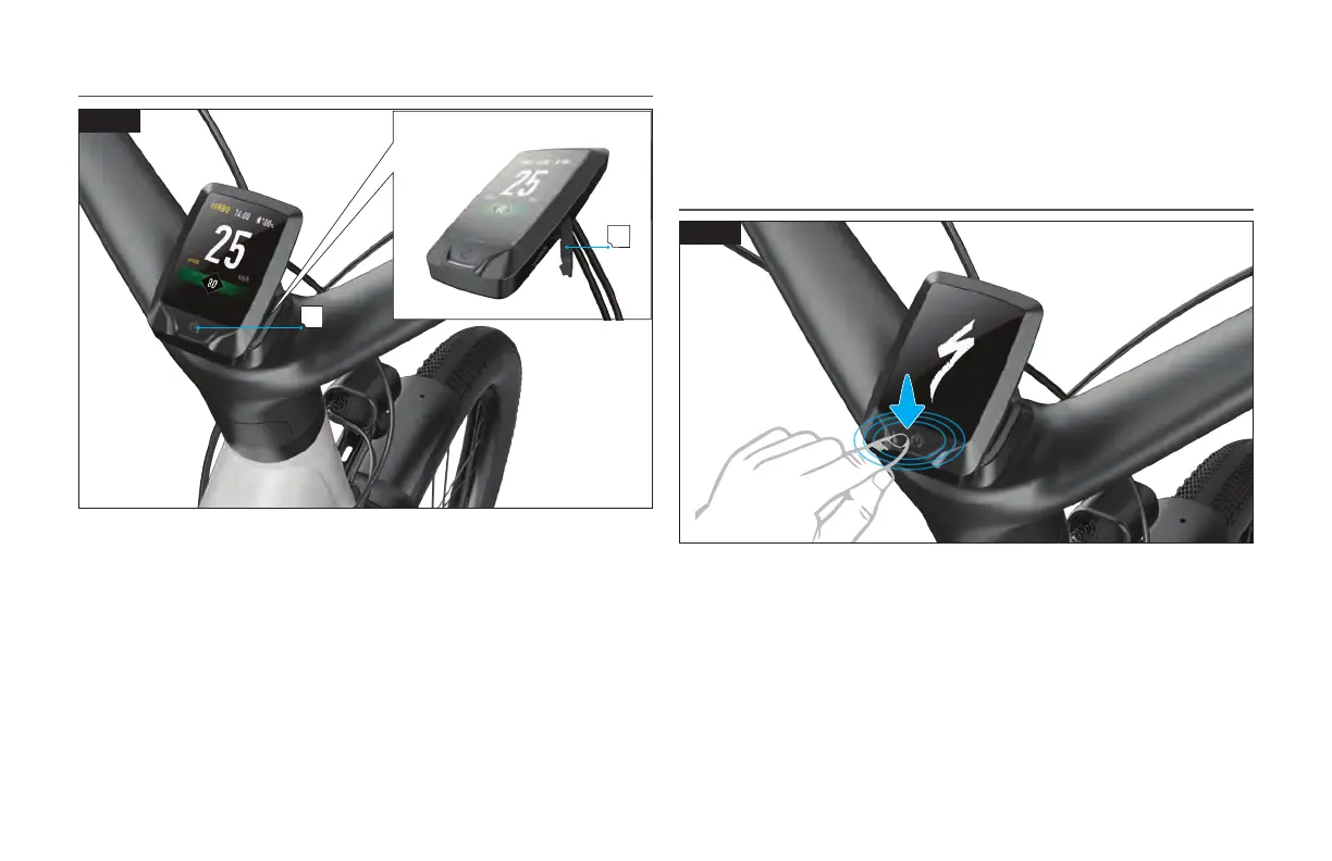 Der USB-C-Anschluss an der rechten Seite des Displays (B) ist für Specialized-