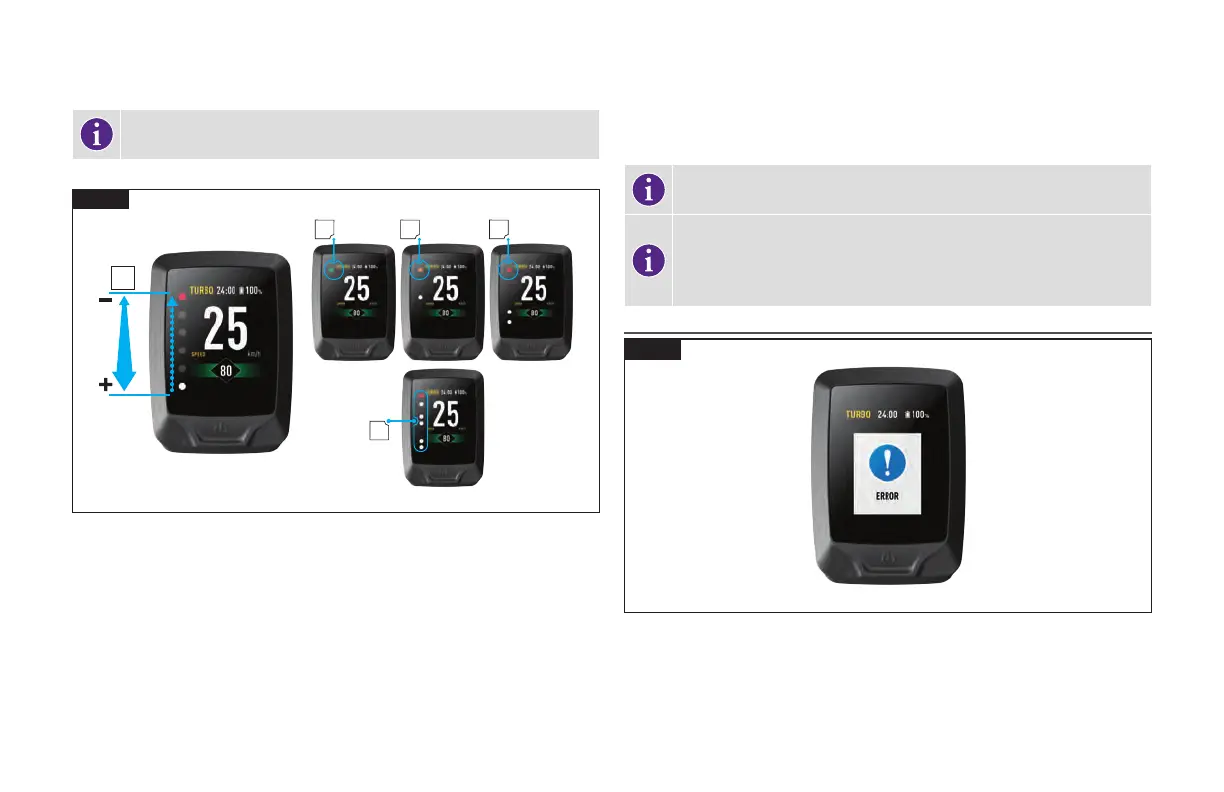 nahoru k vašemu elektrokolu (A). Čím je značka vozidla na displeji více dole, tím dál se od