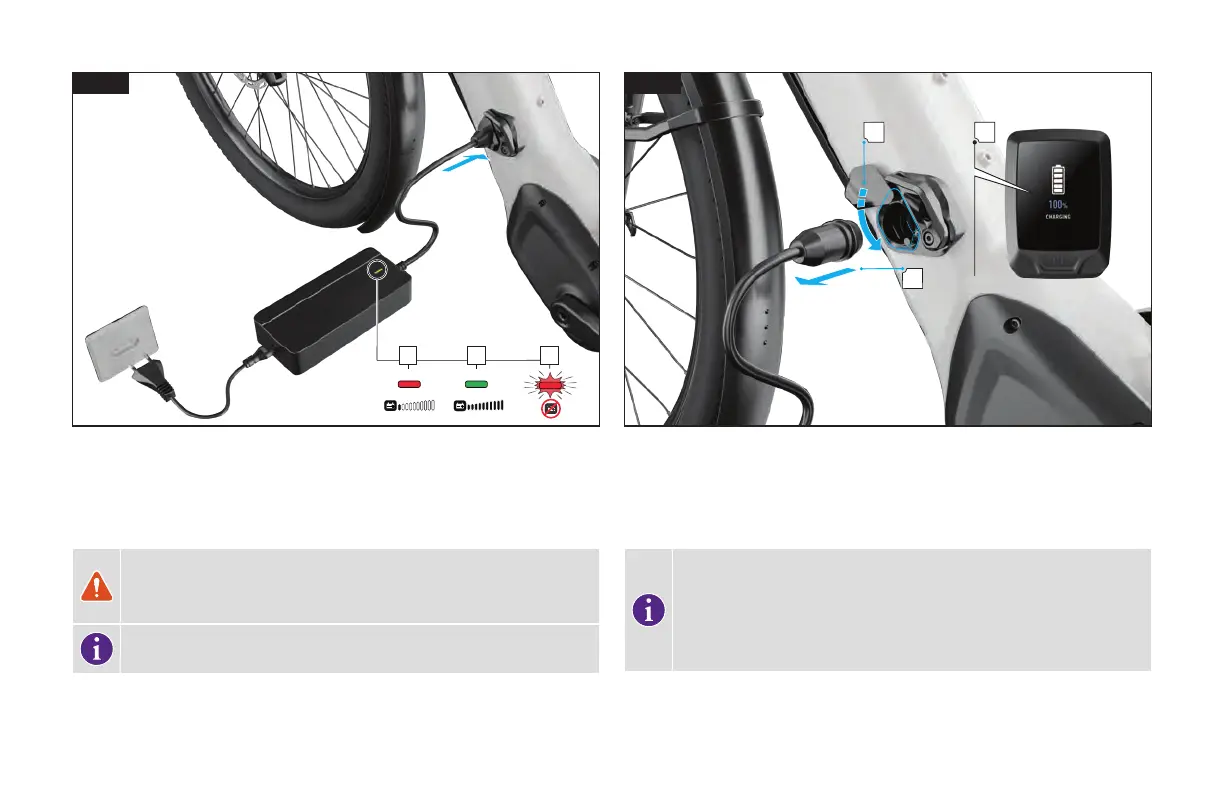 Jakmile je baterie plně nabitá (A), odpojte zástrčku nabíječky z konektoru baterie (B)
