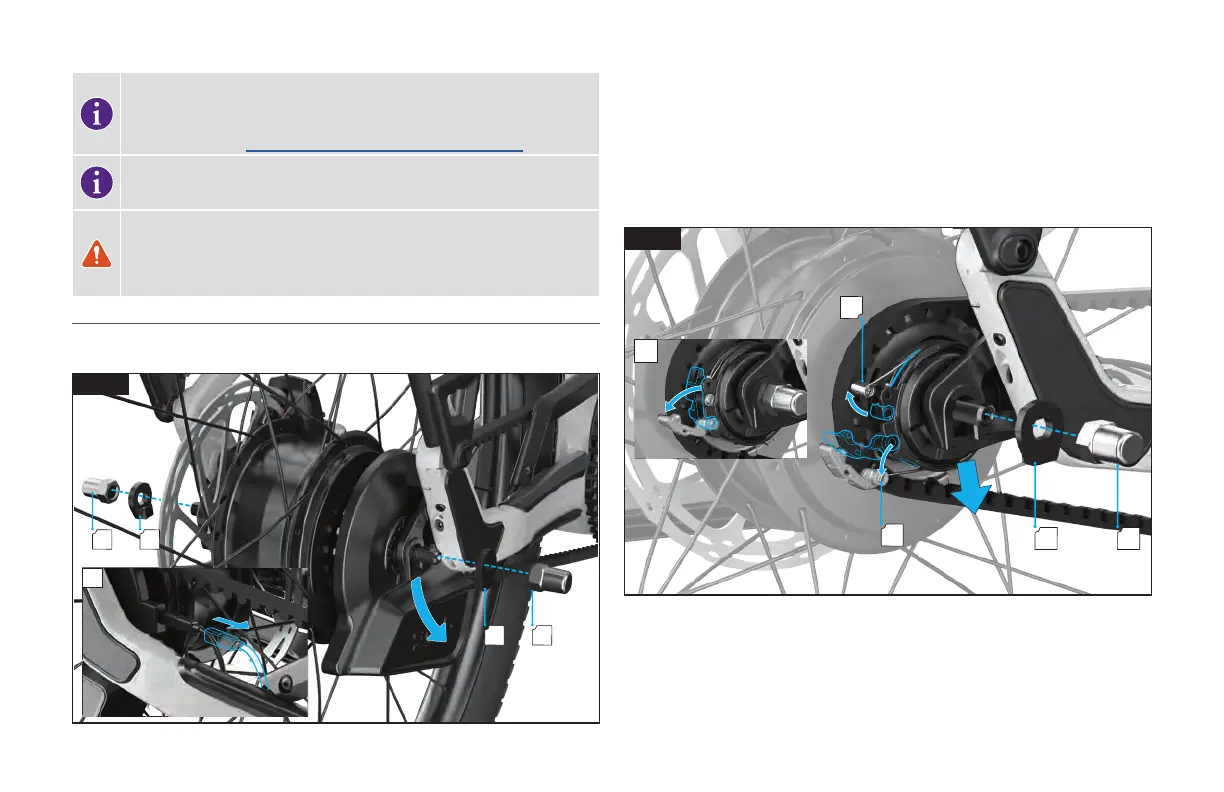 Pomocou 15 mm stranového kľúča odstráňte matice zadnej osi (B) a podložky