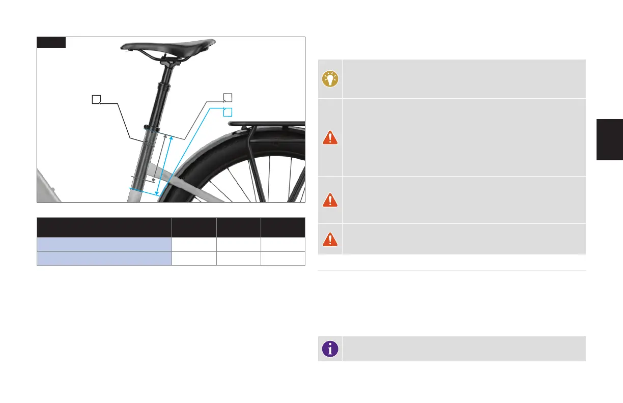 WARNUNG! Stellen Sie sicher, dass an der Sattelstütze und im Sitzrohr keine
