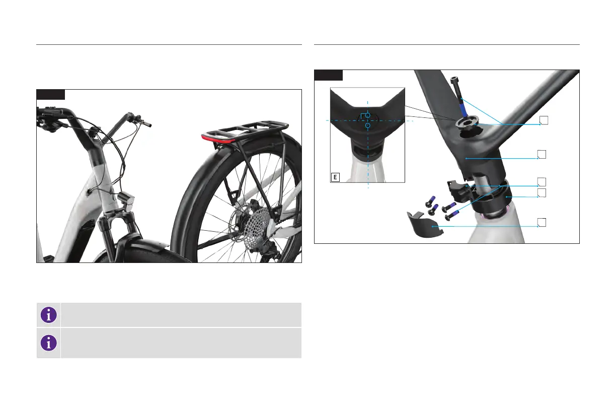 Richten Sie die Öffnungen in der Aheadkappe auf die Mitte des Fahrrads (E) aus.
