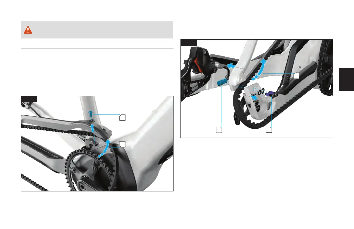 Zahnriemen vorsichtig durch die Öffnung in der Sattelstrebe (C).