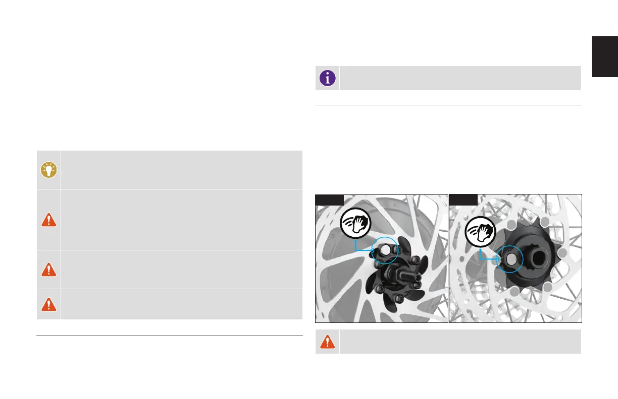 in motion. Also, the brake rotors may be extremely hot after riding.
