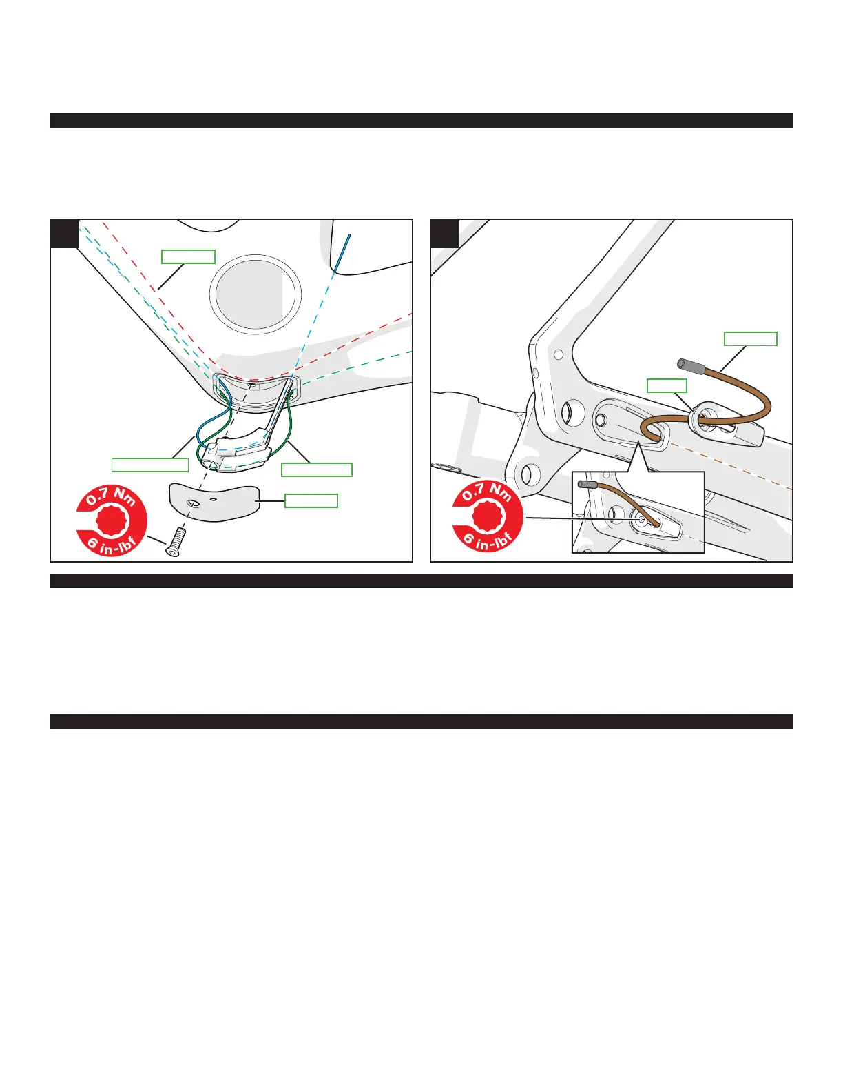 Refer to the drivetrain manufacturer’s instructions related to installing electronic shift wires and the battery, then install the section of wire that goes into the down tube. The wire will enter