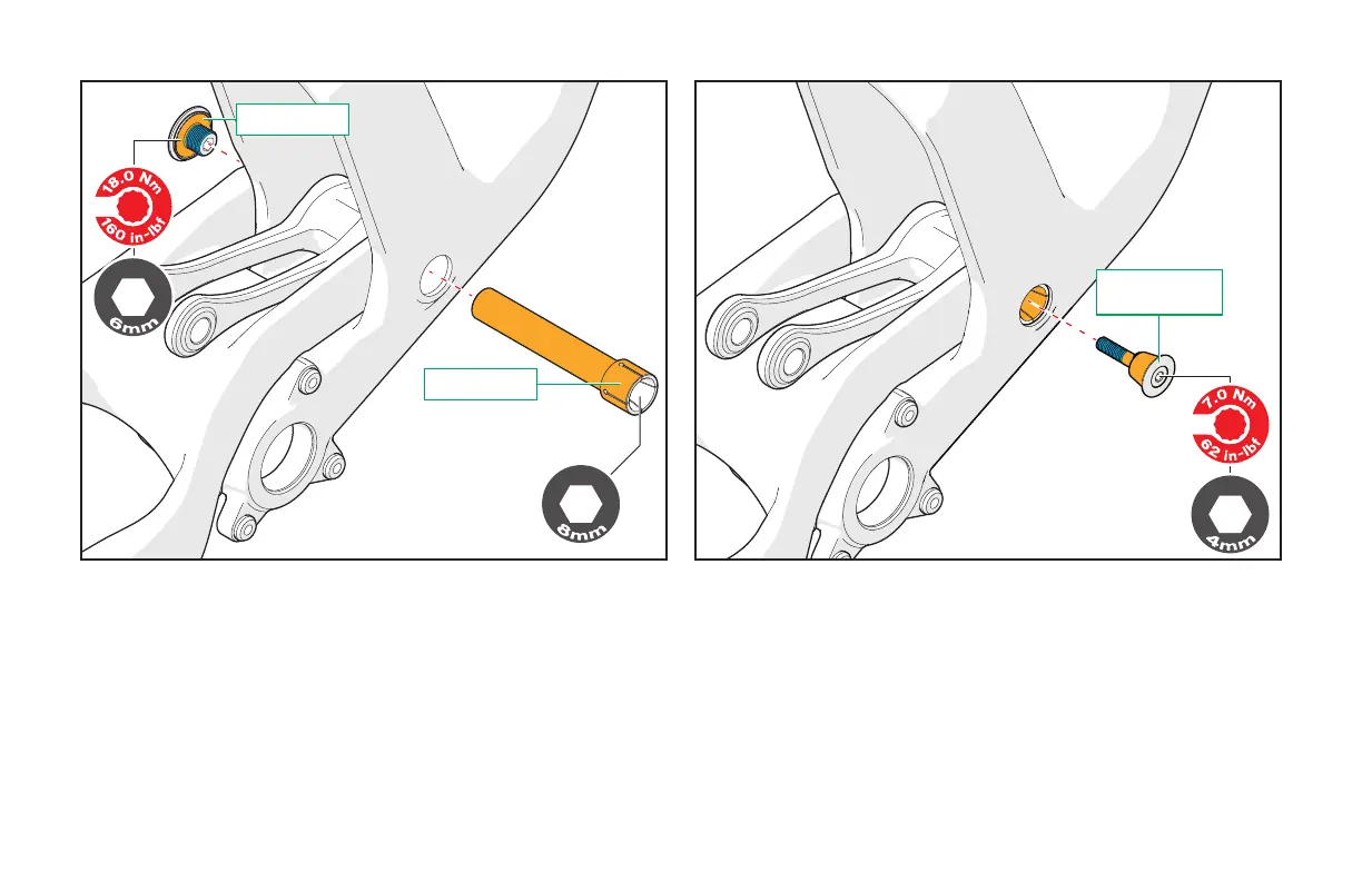 Thread the non-drive side main pivot bolt AA into the axle. Torque the main pivot bolt to