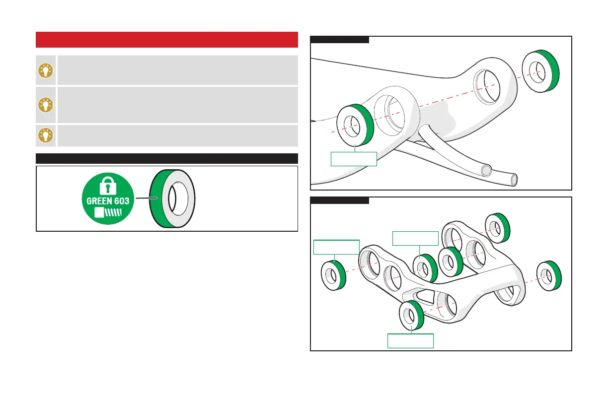 Apply green retaining compound to all the bearing/bore interface surfaces, then press all the