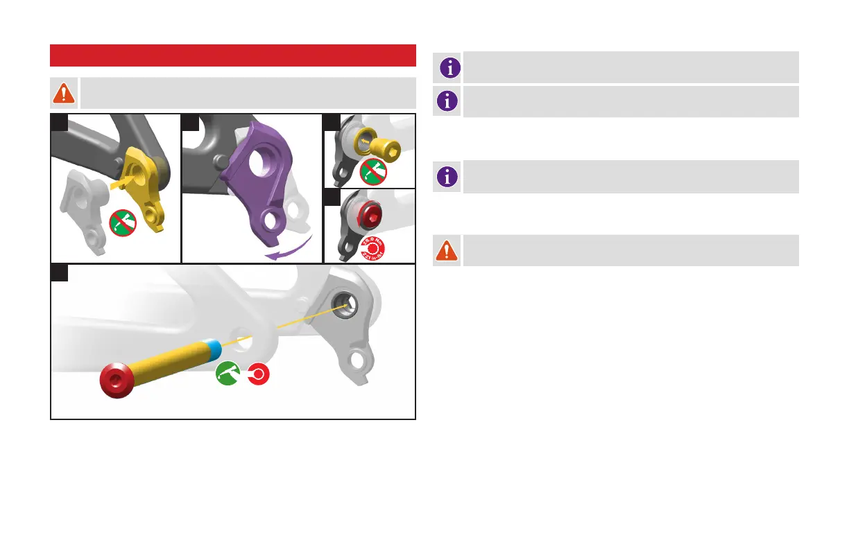 WARNING! Regularly check and confirm the UDH hanger is tight and has not