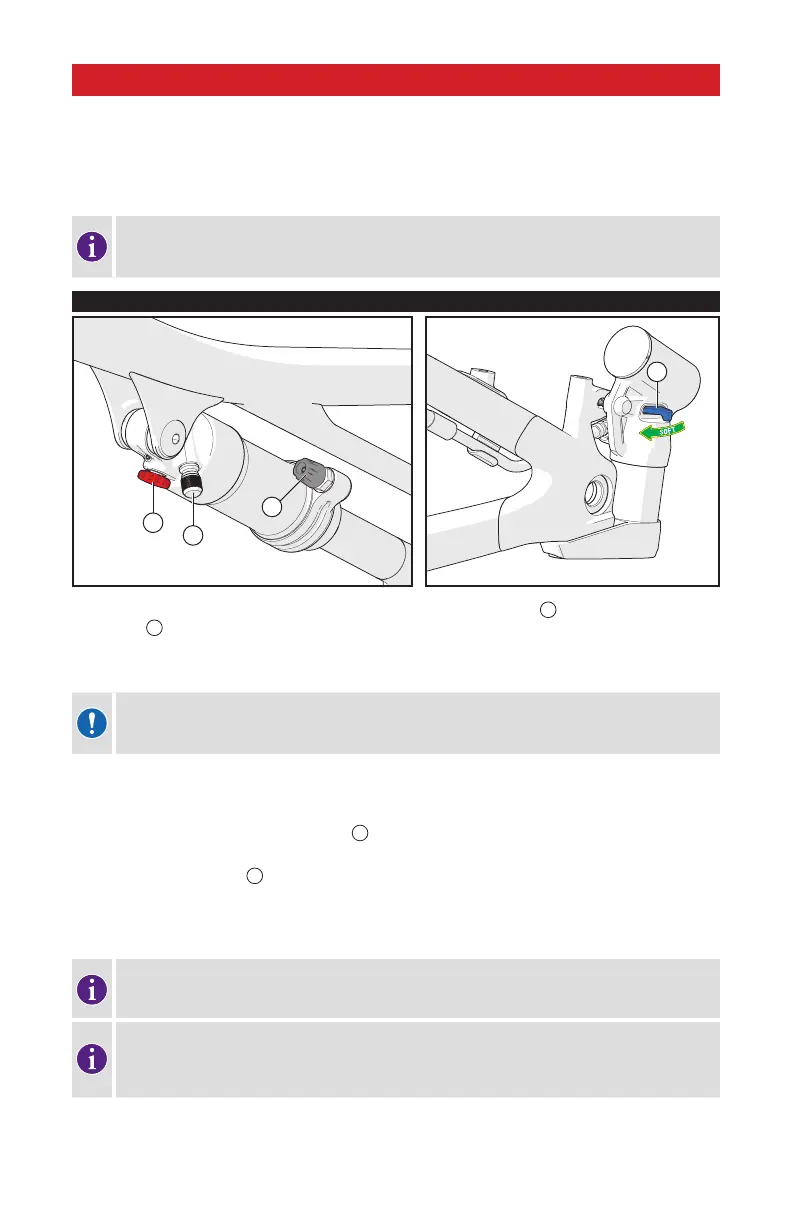 1. Position the shock compression lever or knob (blue) to the full open or off position