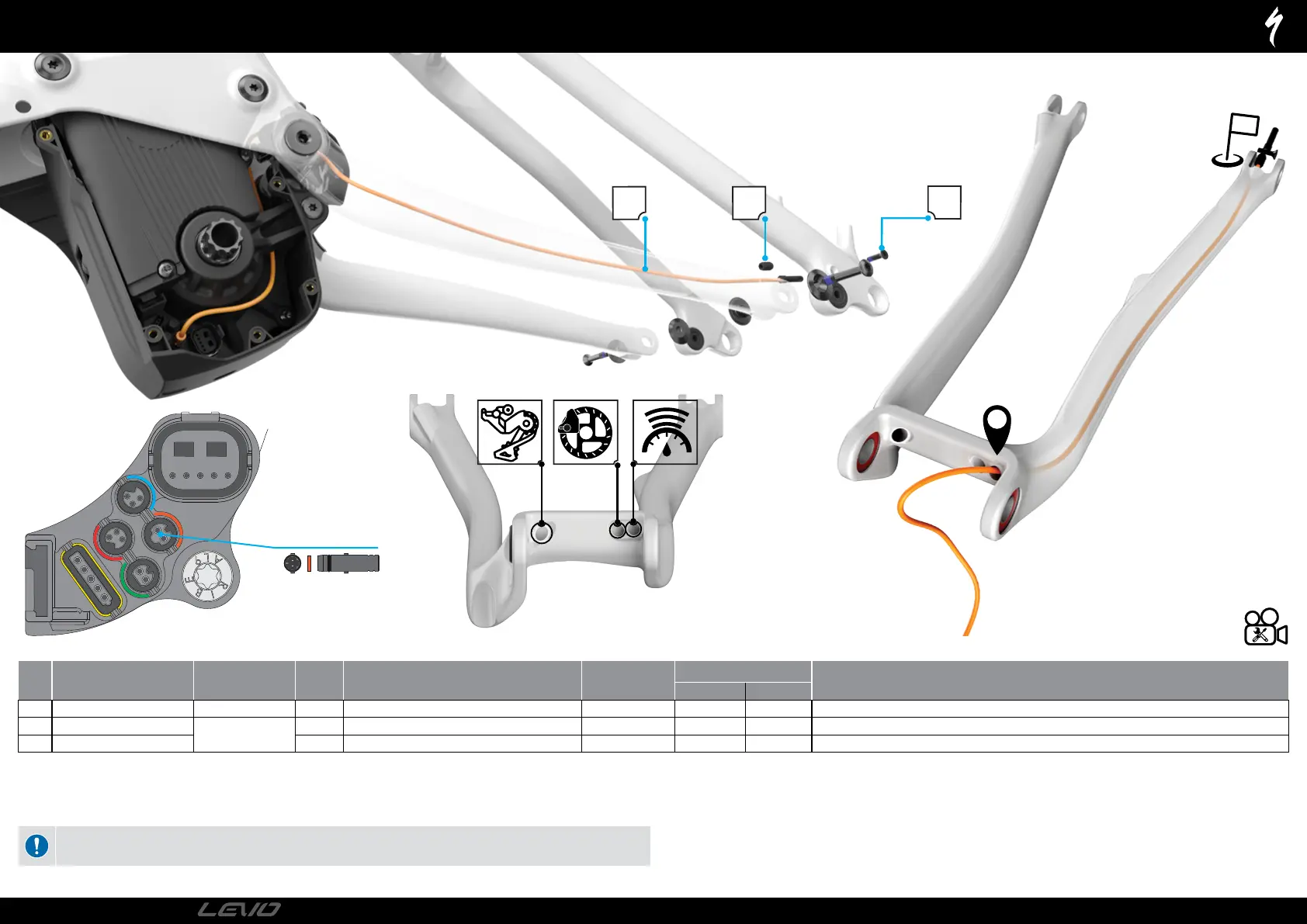 When assembling the rear triangle to the front triangle, thread the speed sensor cable through the motor area and connect the speed sensor