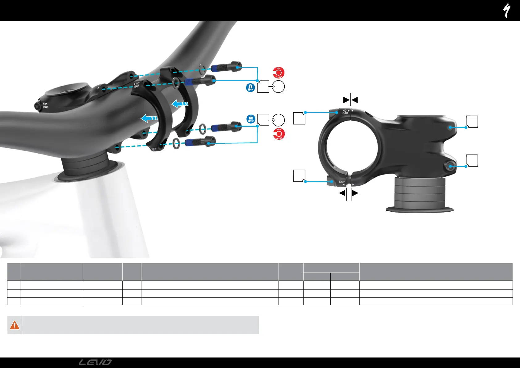 the front wheel. If there is any movement, the stem is not sufficiently tightened and should be re-torqued.