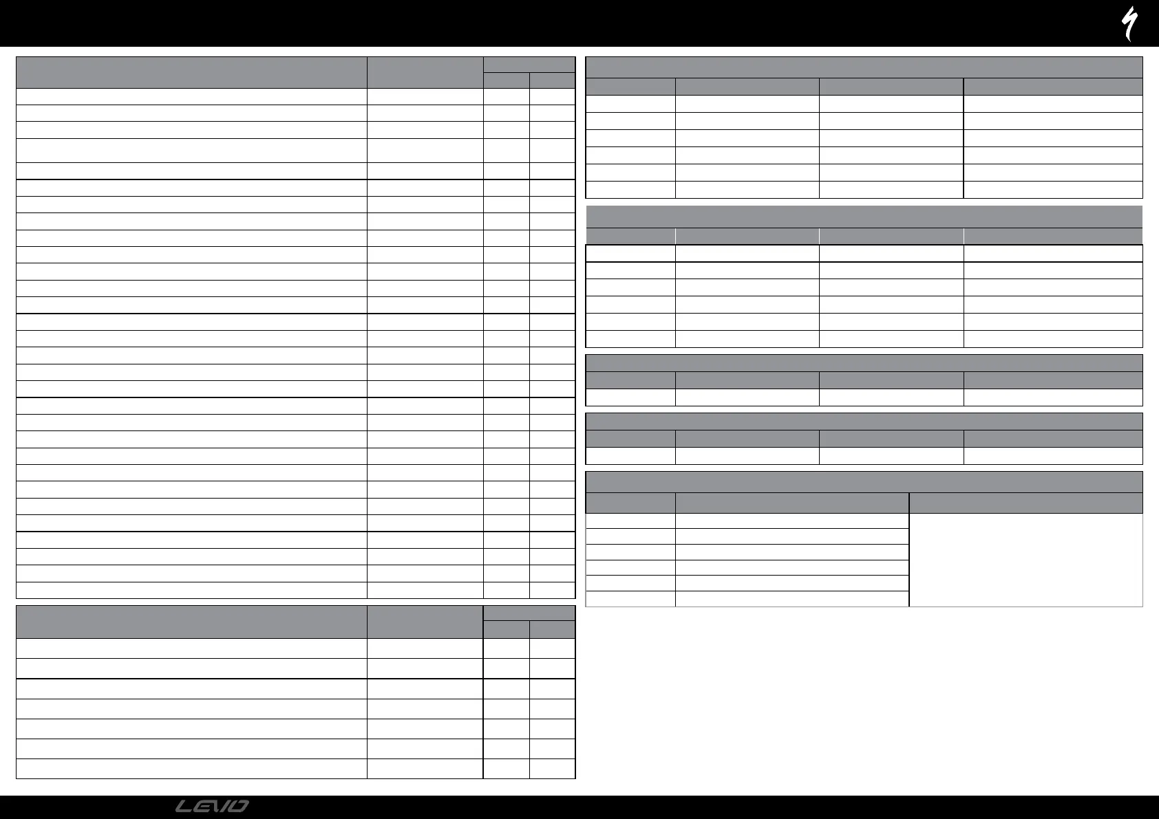 SIZE SHIFT (mm) BRAKES (mm) DROPPER POST (mm)