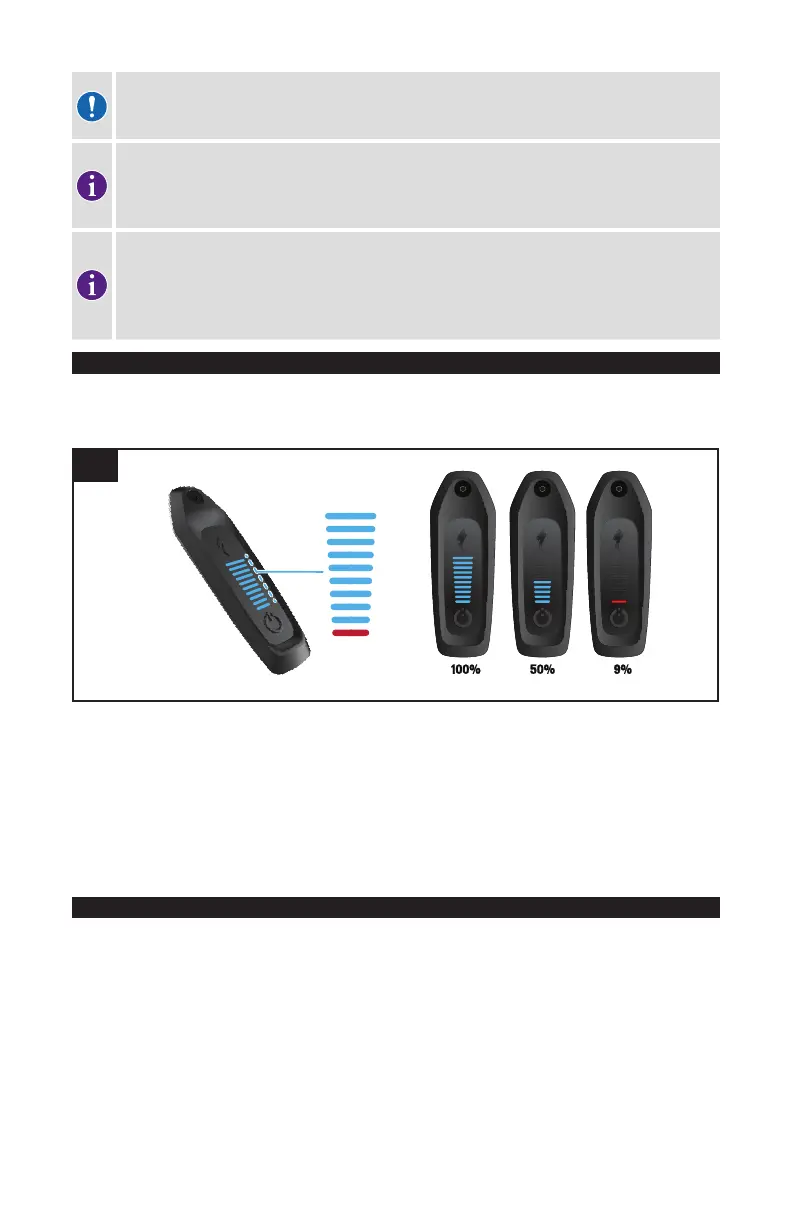 allumées en BLEU indique la charge restante de la batterie (Fig. 9.5). Lorsque la charge de la batterie atteint 10 %,