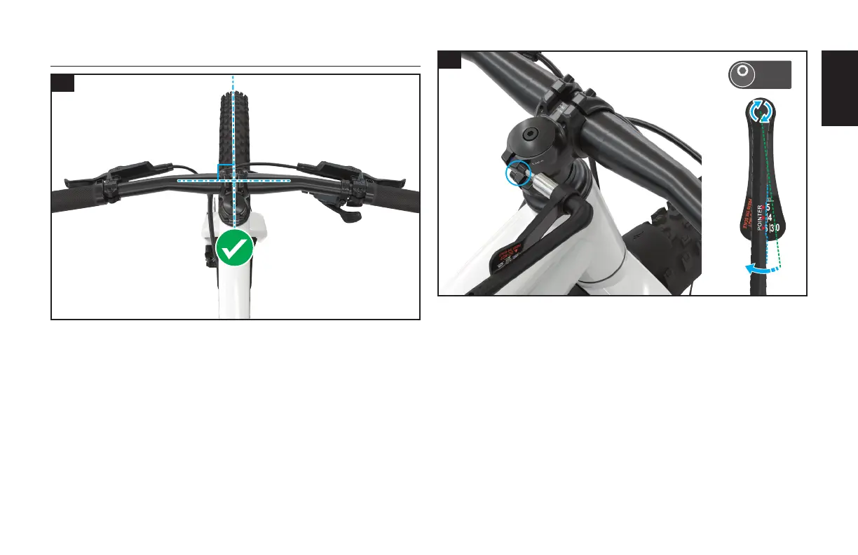To align the stem, use the supplied wrench to loosen the bolts on the rear of the stem and