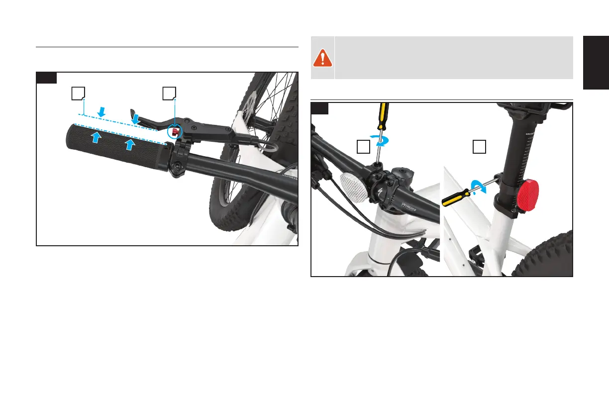 Using a Phillips screwdriver, install the front (white) reflector on the handlebar (A) and the