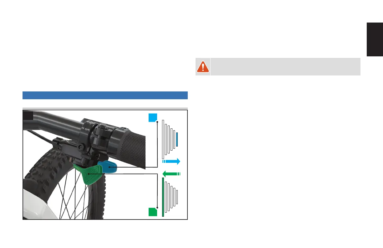 The upper lever shifts your bicycle into a lower gear (A) and the lower lever shifts your