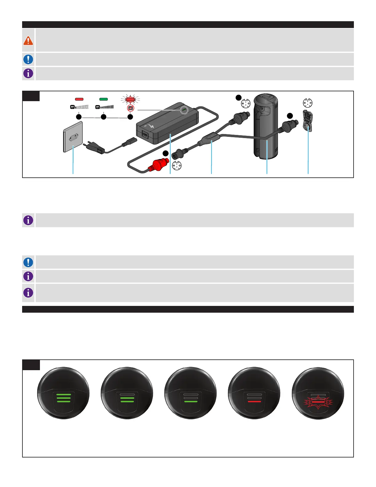 During the charging process, the diode on the charger will glow red (fig. 8 - 1). When the RE is fully charged, the diode on the charger will turn green (fig. 8 - 2).