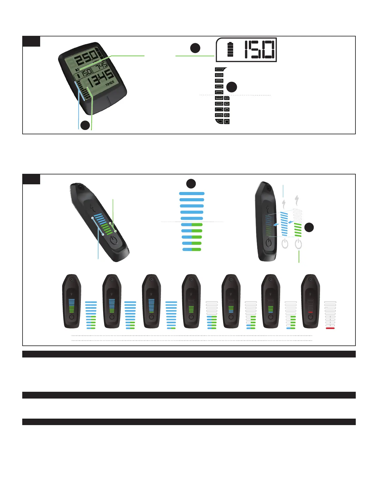The RE green light bars will overlay on the first 5 blue light bars of the internal battery light bars (fig. 10 B) and will hide some or all the blue bars depending on their state of charge. When the