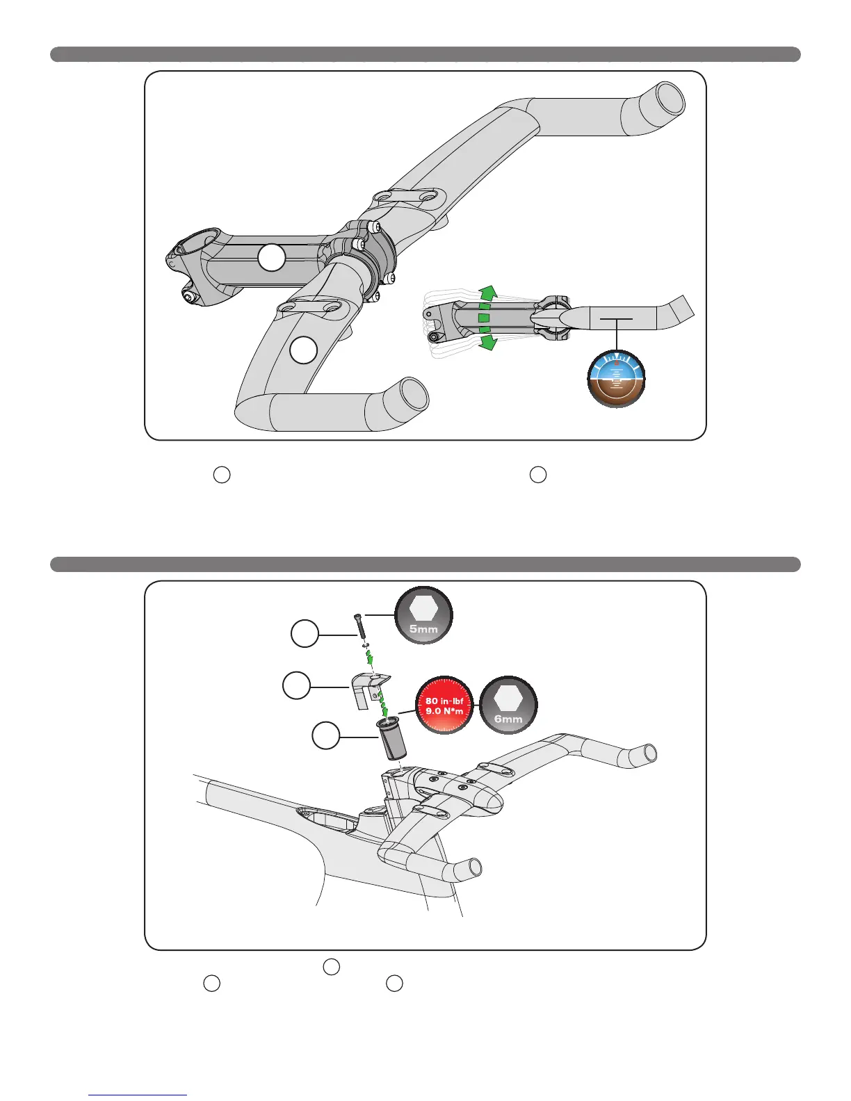 16. Orient the handlebar position horizontally, then torque the stem faceplate bolts to the manufacturer’s specifications.