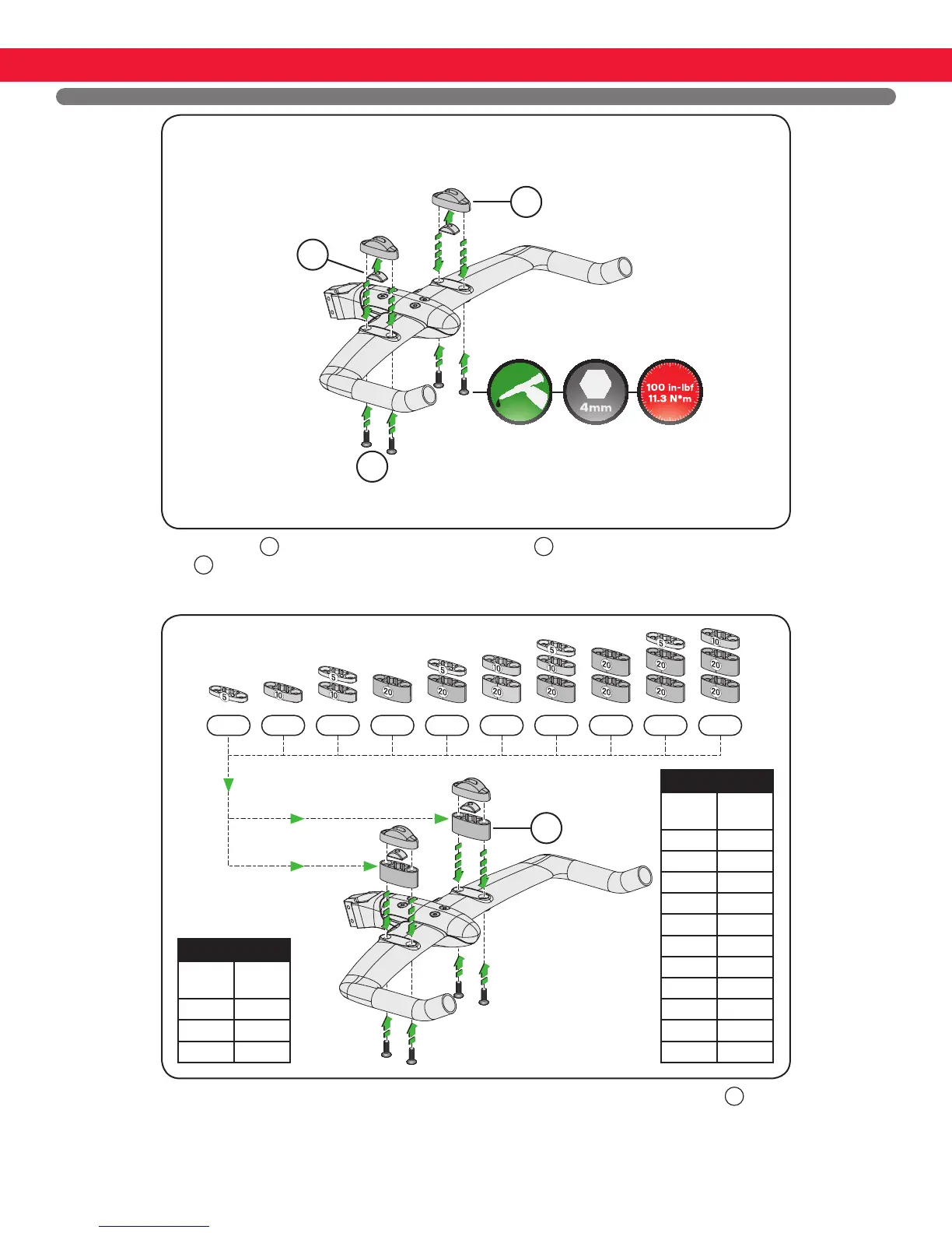 4. Additional extension riser stack height can be achieved (5 to 50mm) by stacking different combinations of riser parts