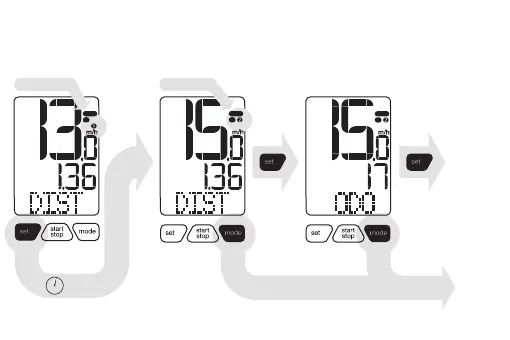 1. Halten Sie im Modus „DIST“ (Fahrt) die Taste „set“ (Einstellen)