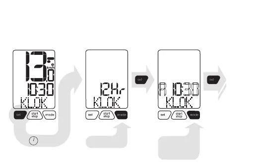 1. Druk in de modus ‘KLOK’ twee seconden op de toets 'set'.