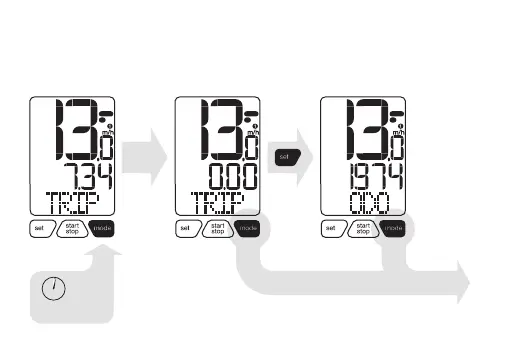 1. Druk in de modus ‘TRIP’ twee seconden op de toets ‘mode’.