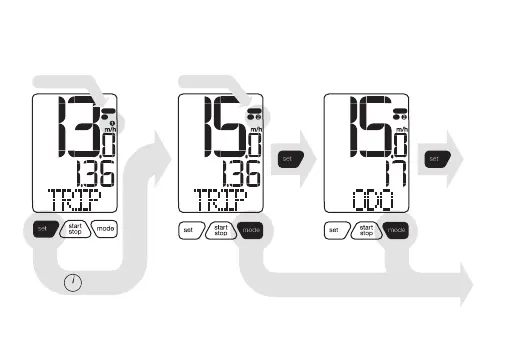 1. Druk in de modus ‘TRIP’ twee seconden op de toets 'set'.