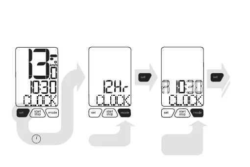 2. Set desired time (and format) by using “mode” and “set” keys.