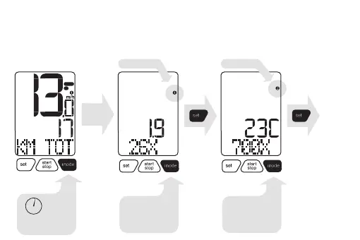 1. Dans le mode « KM TOT », appuyez sur la touche « mode » pendant deux secondes.