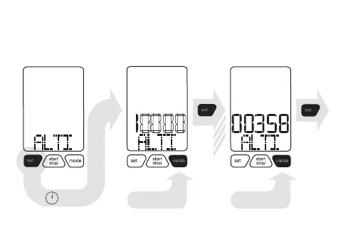1. Dans le mode « ALTI », appuyez sur la touche « set » pendant deux secondes.