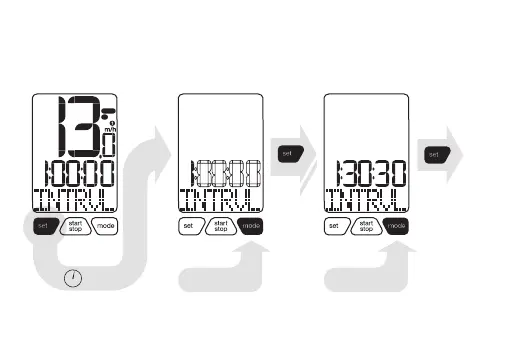1. Dans le mode « INTRVL », appuyez sur « set » pendant deux secondes.