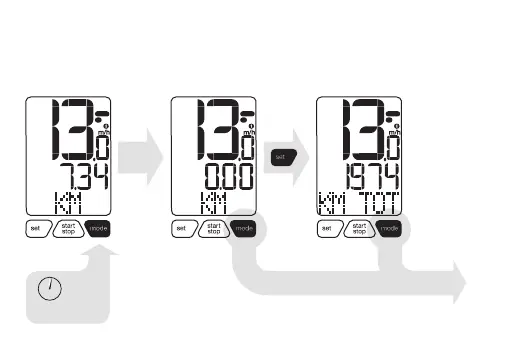 En el modo “KM” (recorrido), pulse la tecla “mode” durante dos segundos.
