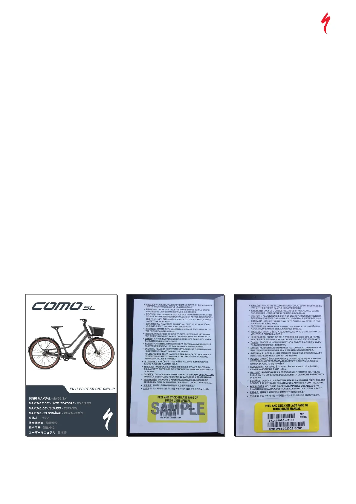 Every Como SL bike ships with a printed manual in the market