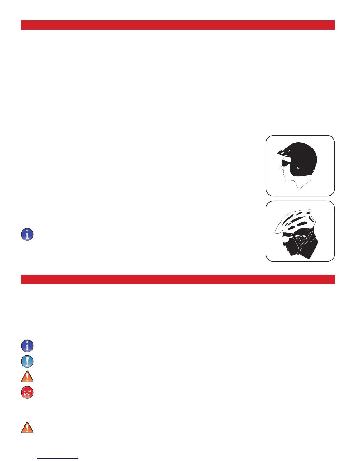 • Read the instructions supplied by your helmet manufacturer relating to fitting the helmet properly.