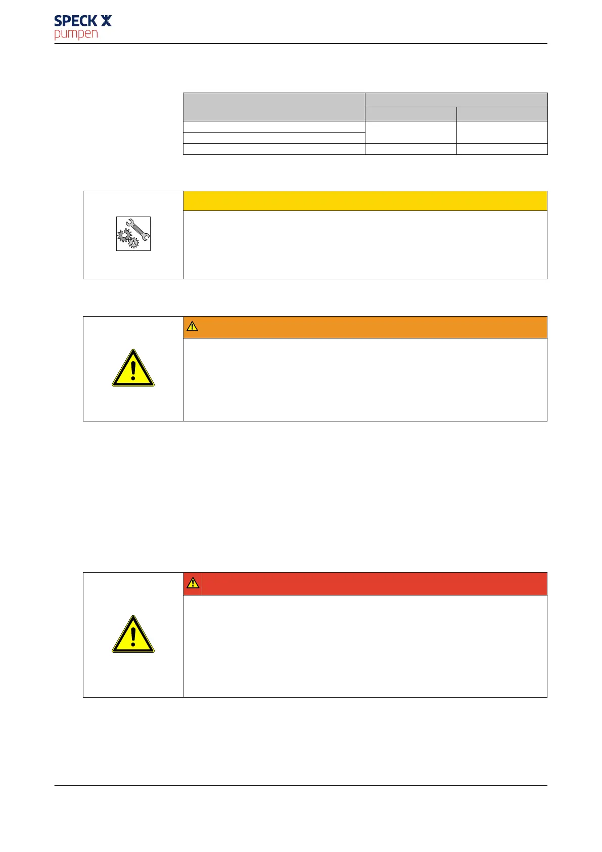 Tabelle 14: Spaltspiele zwischen Laufrad und Gehäuse oder Laufrad und Gehäusede-
