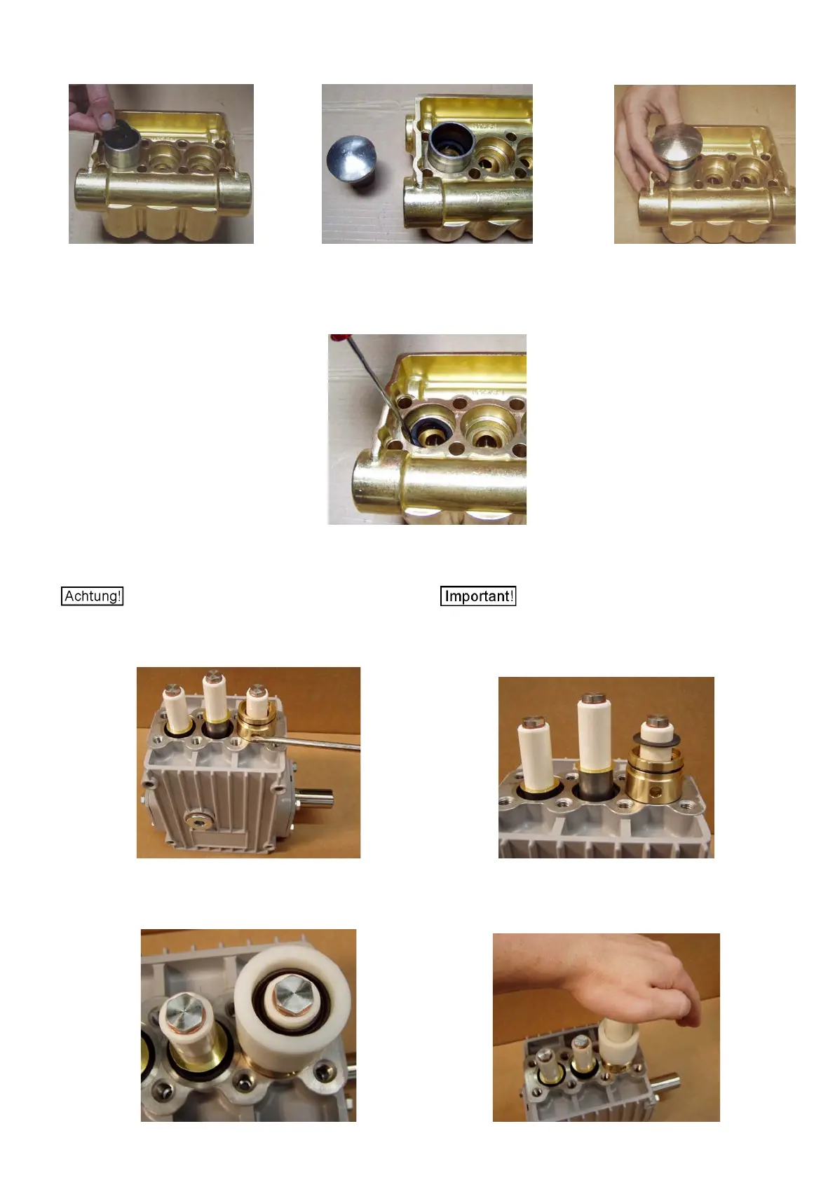 Dann die Dichtungsaufnahmen (20) auf den Antrieb stecken (Bild 14).