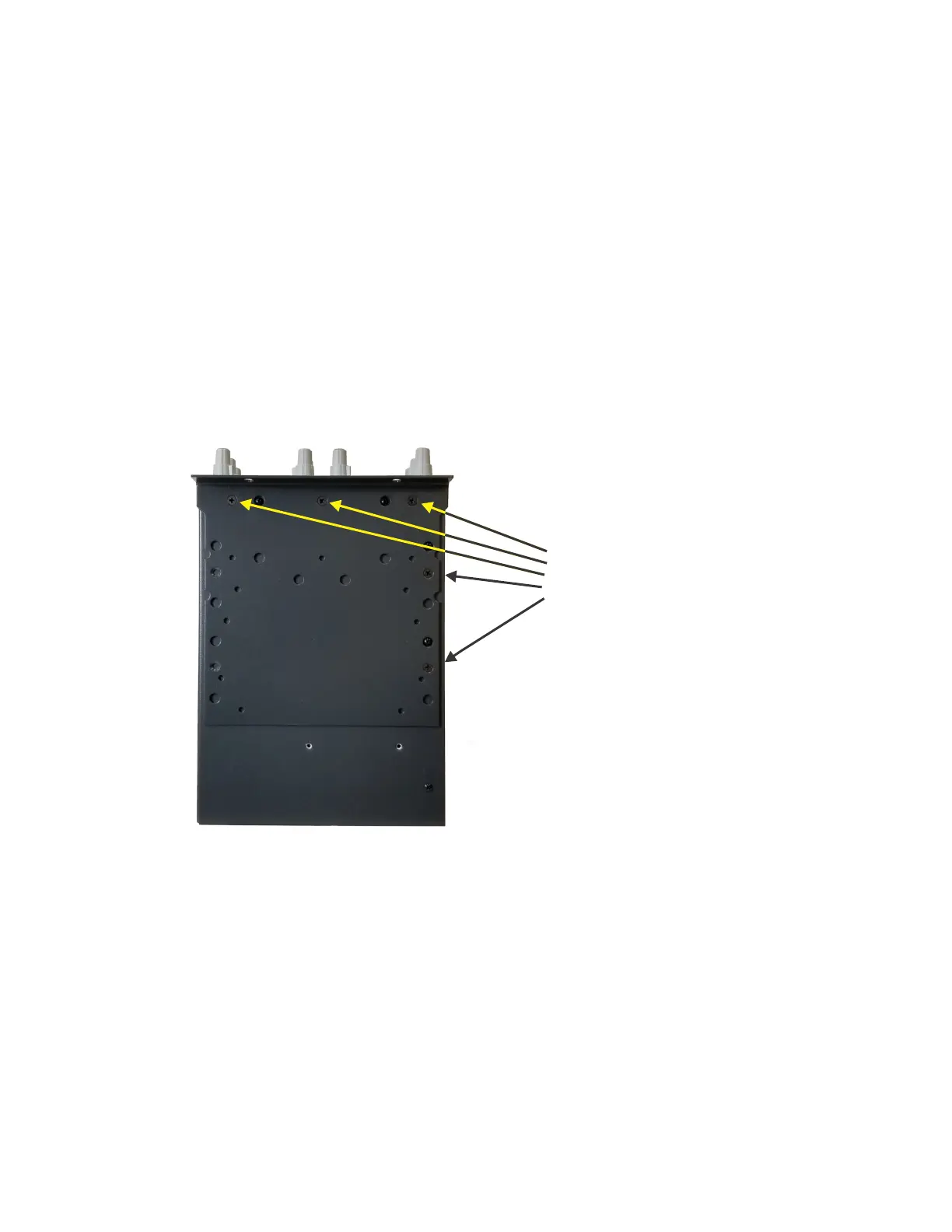 Use the (5) black 6-32 Phillips flat head machine screws that have been supplied to attach