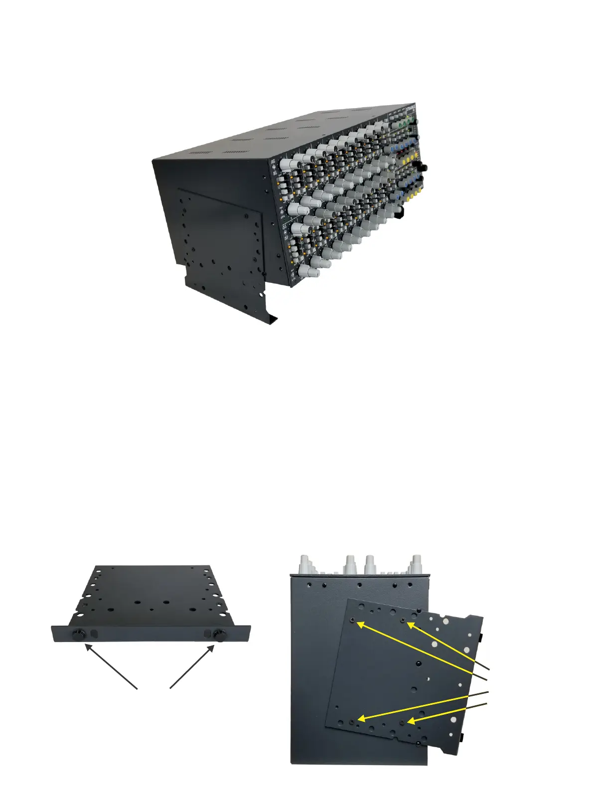 (4) Black 6-32 Phillips flat head machine screws are needed to attach the 2 rack adapters to