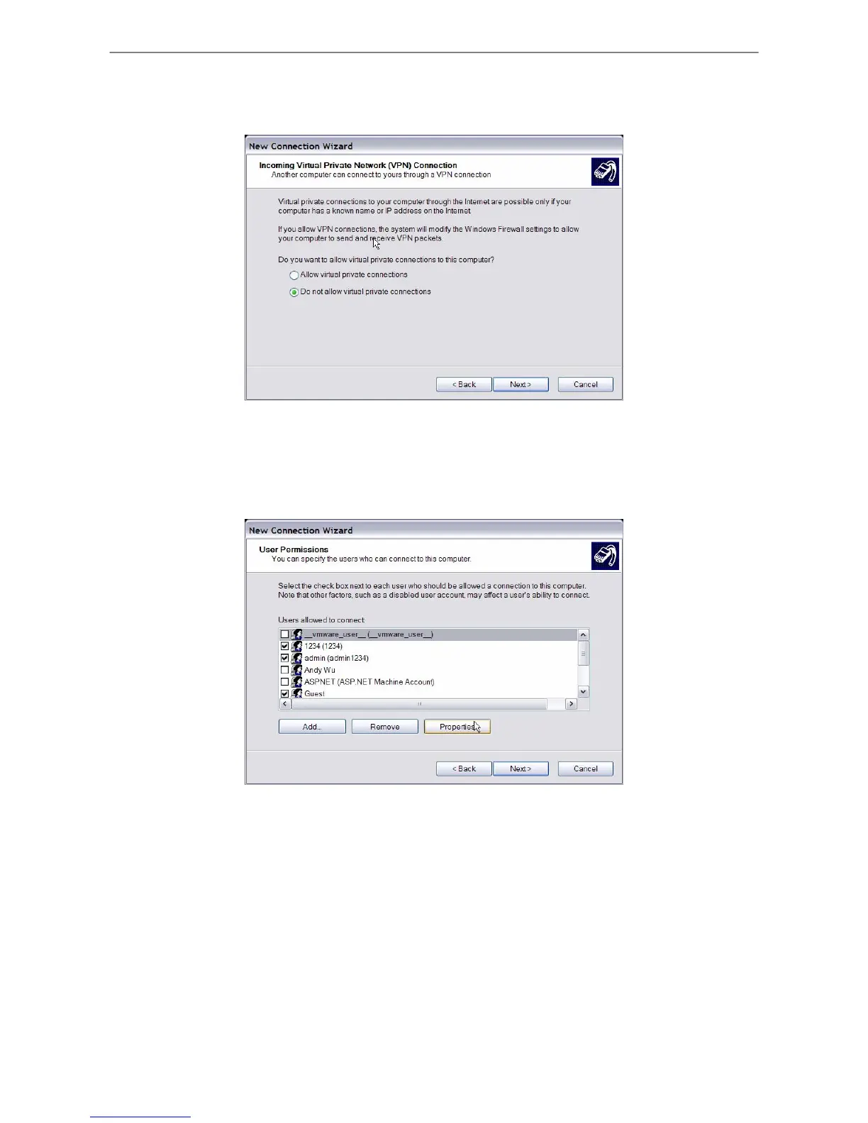 • In Incoming VPN Connection menu, choose <Do Not allow virtual private
