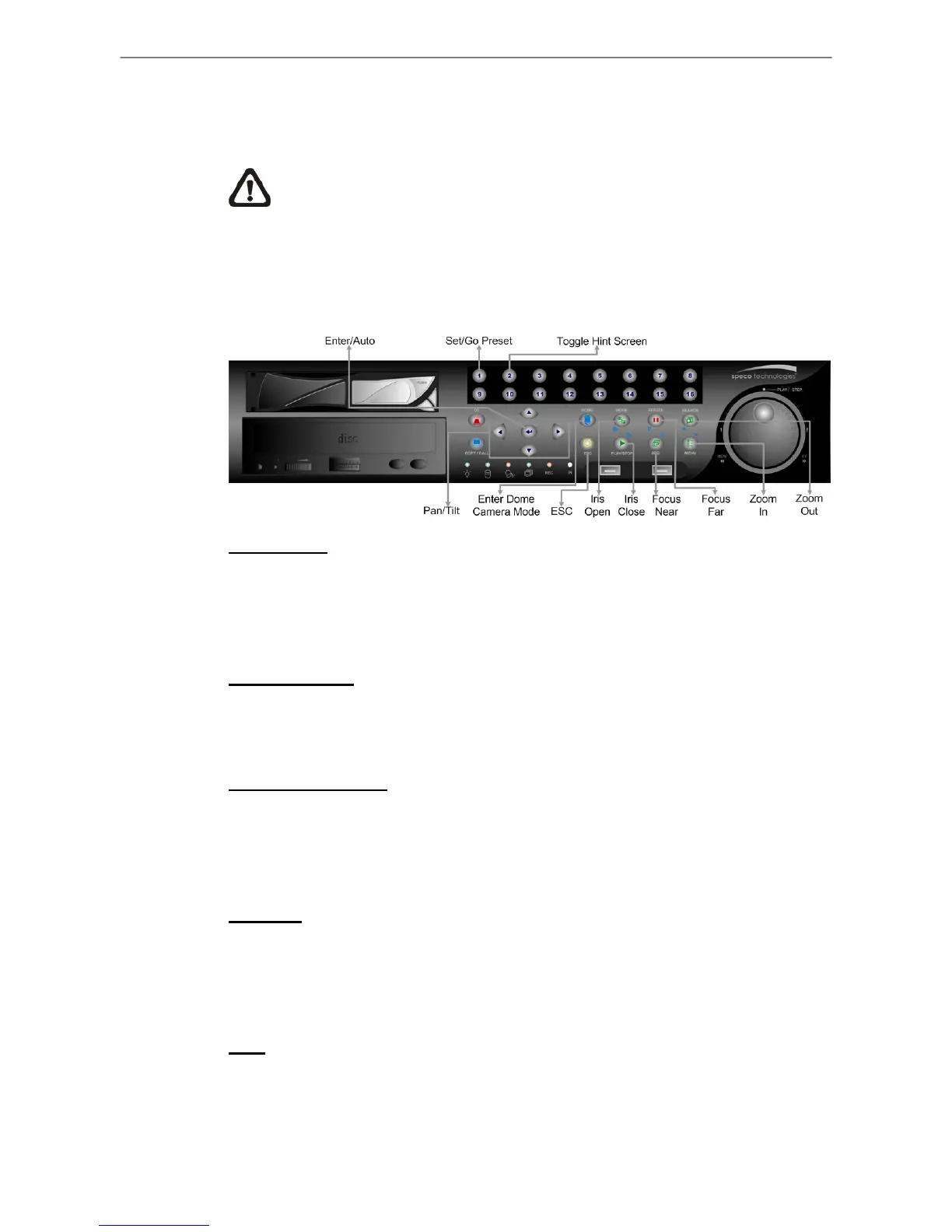 controlling the dome camera. Press this key to hide the information. Press the